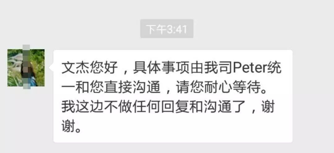 找Peter吧,Peter先生已拒绝了与我的沟通: