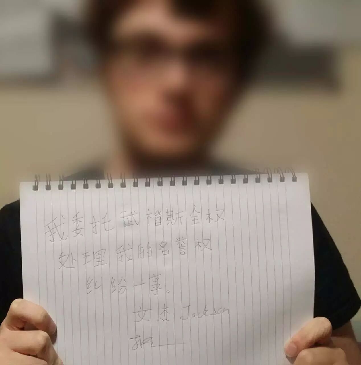 通过好友介绍,我直接找到了【北美留学生日报】的编辑Peter,请他加了文杰,文杰表明自己较忙,又有时差,这事儿就授权武楷斯全权处理,并手写了授权委托书,拍照发给了Peter,但是对方认为我没有营业执照,没有大使馆认证,拒绝沟通。