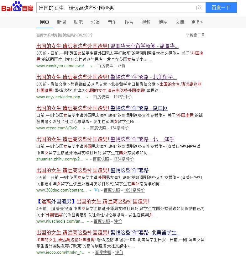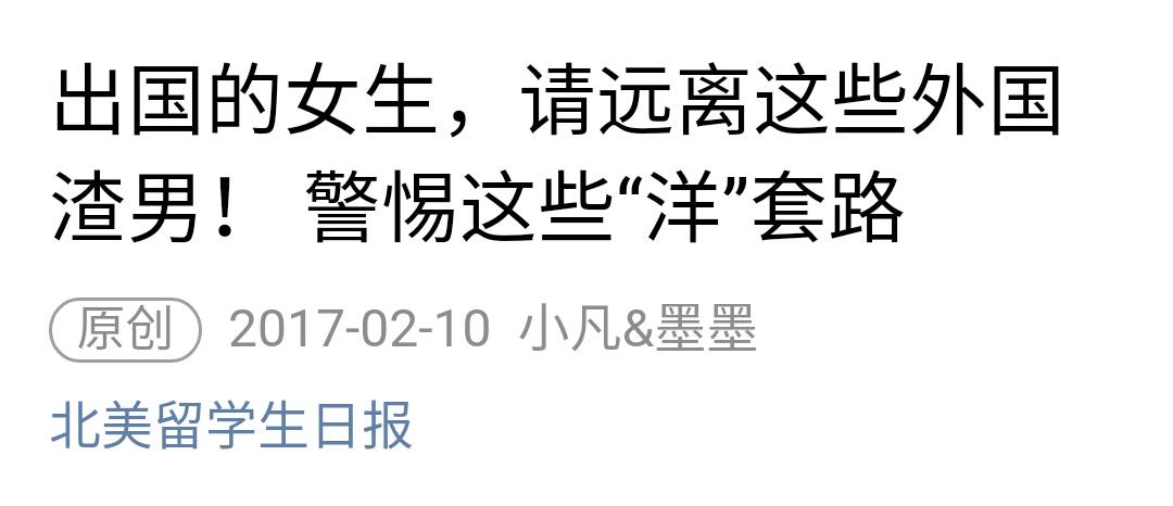 文章讲述了各类品行不端的渣男,用套路欺骗中国女留学生等内容,这篇文章也瞬间走红,成为了一篇10w+热文,网络上四处都可以见到相关的内容: