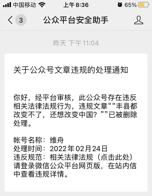 今天原本想再写一篇《徐州人怎么看待丰县事件》,但一早醒来就发现,昨天那篇《“丰县都改变不了,还想改变中国?”》已经被消失了。我不得不临时改变计划,再写一份通告。