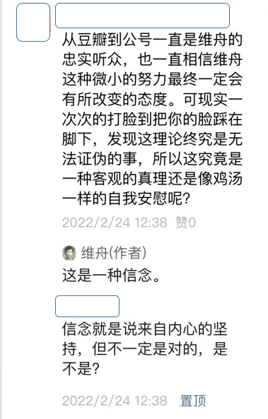 当然,我深知,能在当下的环境下,抱有希望本身就是件不容易的事。有一位老读者就对此不无怀疑: