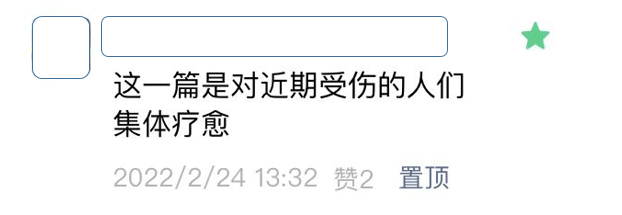 有读者跟我说,她看哭了,也有人戏谑:“还是你会安慰人。”另一位言简意赅地说:“这一篇是对近期受伤的人们集体疗愈。”