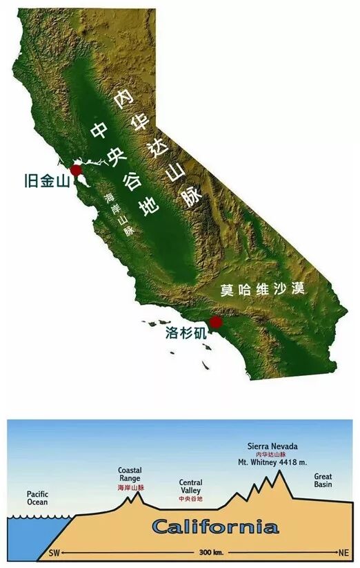 ▲加利福尼亚州地形图(资料图)