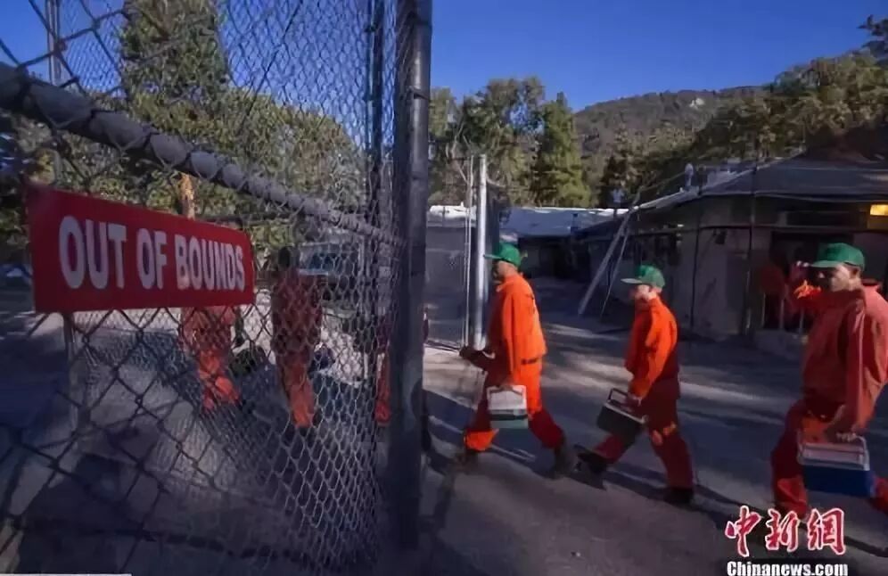 ▲走出监狱参与灭火的加州囚犯(图源:中新网)