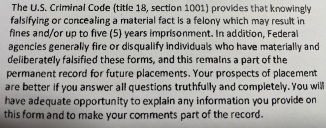 ▲说明中提到,按照美国相关法律,“虚假陈述”可能面临5年刑期