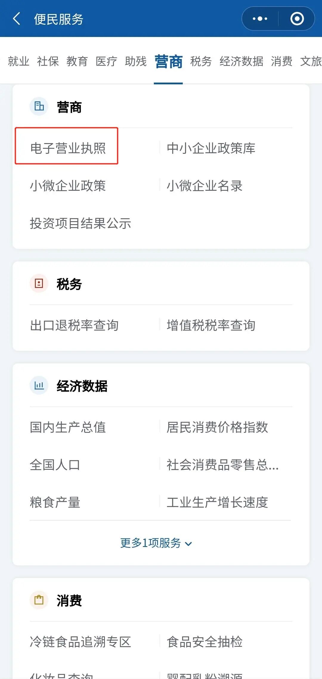 点击“电子营业执照”即可进入👇
