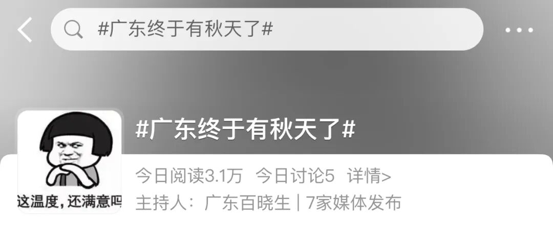 最近的广东天气就像小作精女友的脸,在还没反应过来的时候,就冷下来了。但对于广东“超长待机”的酷暑来说,秋天的到来就像是给整个广东按下了冷气开关,每个被炎炎夏日折磨的广东人都迫不及待想感受“户外空调房”带着凉意的风拂过全身的快乐。网友们不禁感叹:广东的秋天,终于等到你!