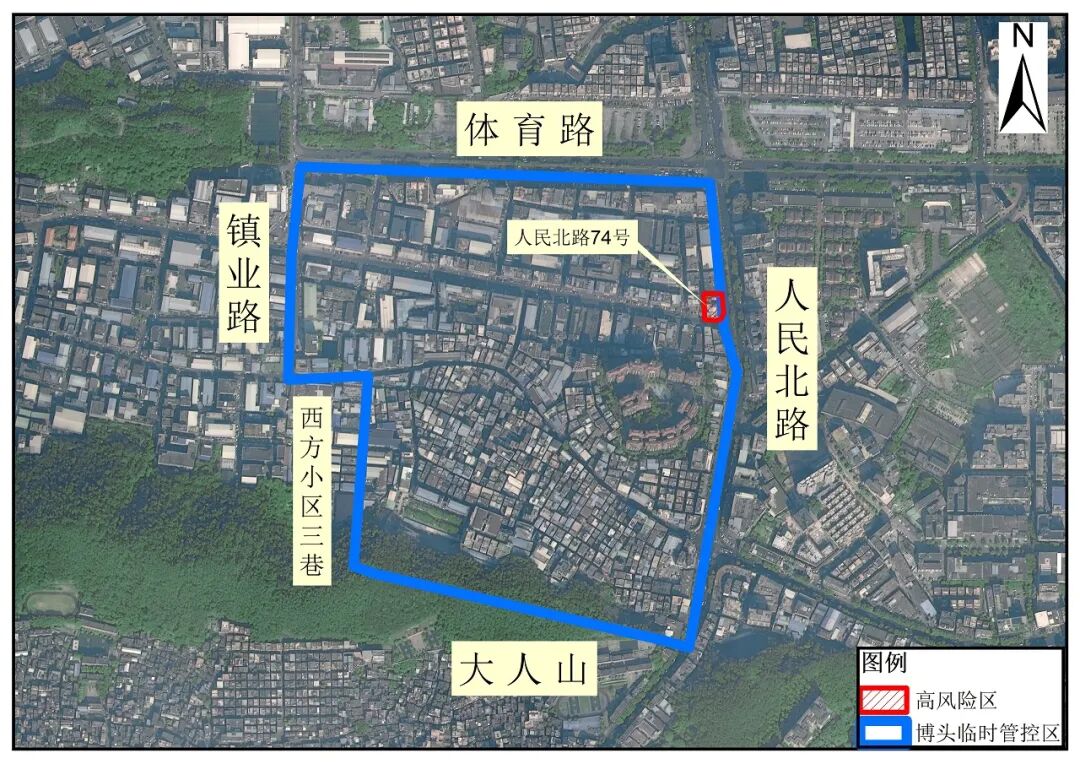 划定体育路—人民北路—大人山—西方小区三巷—镇业路围合区域为临时管控区。