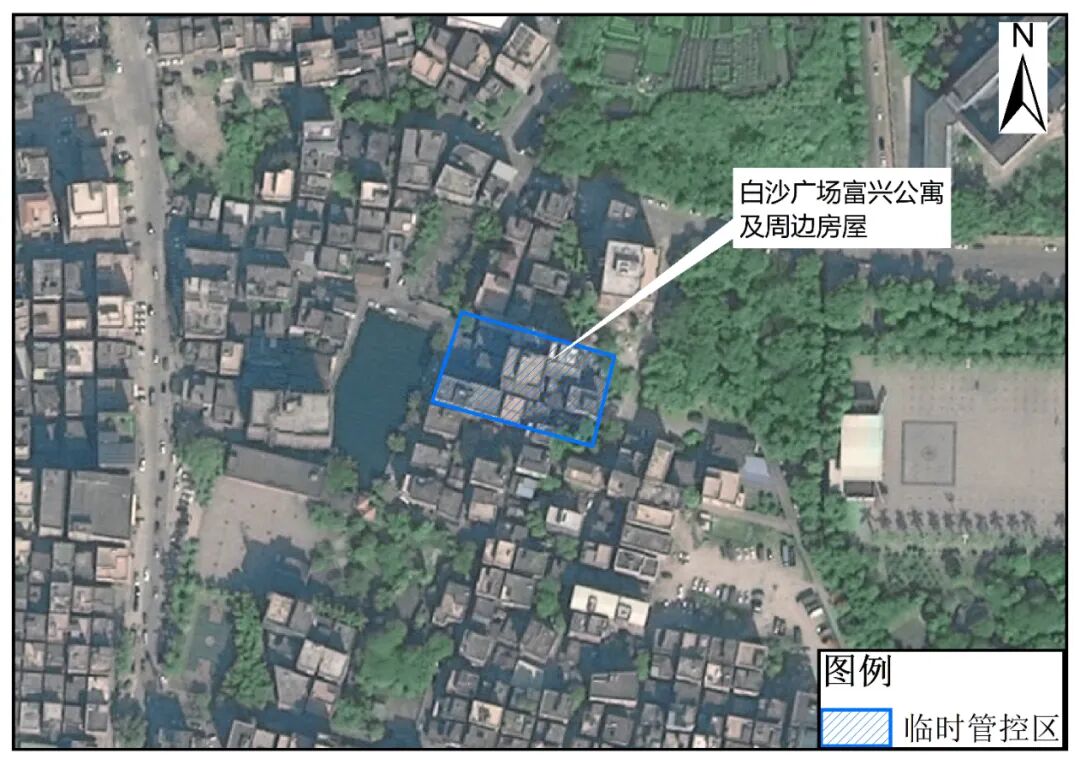 划定虎门镇白沙广场富兴公寓及其周边房屋围合区域为临时管控区(详见附图)。
