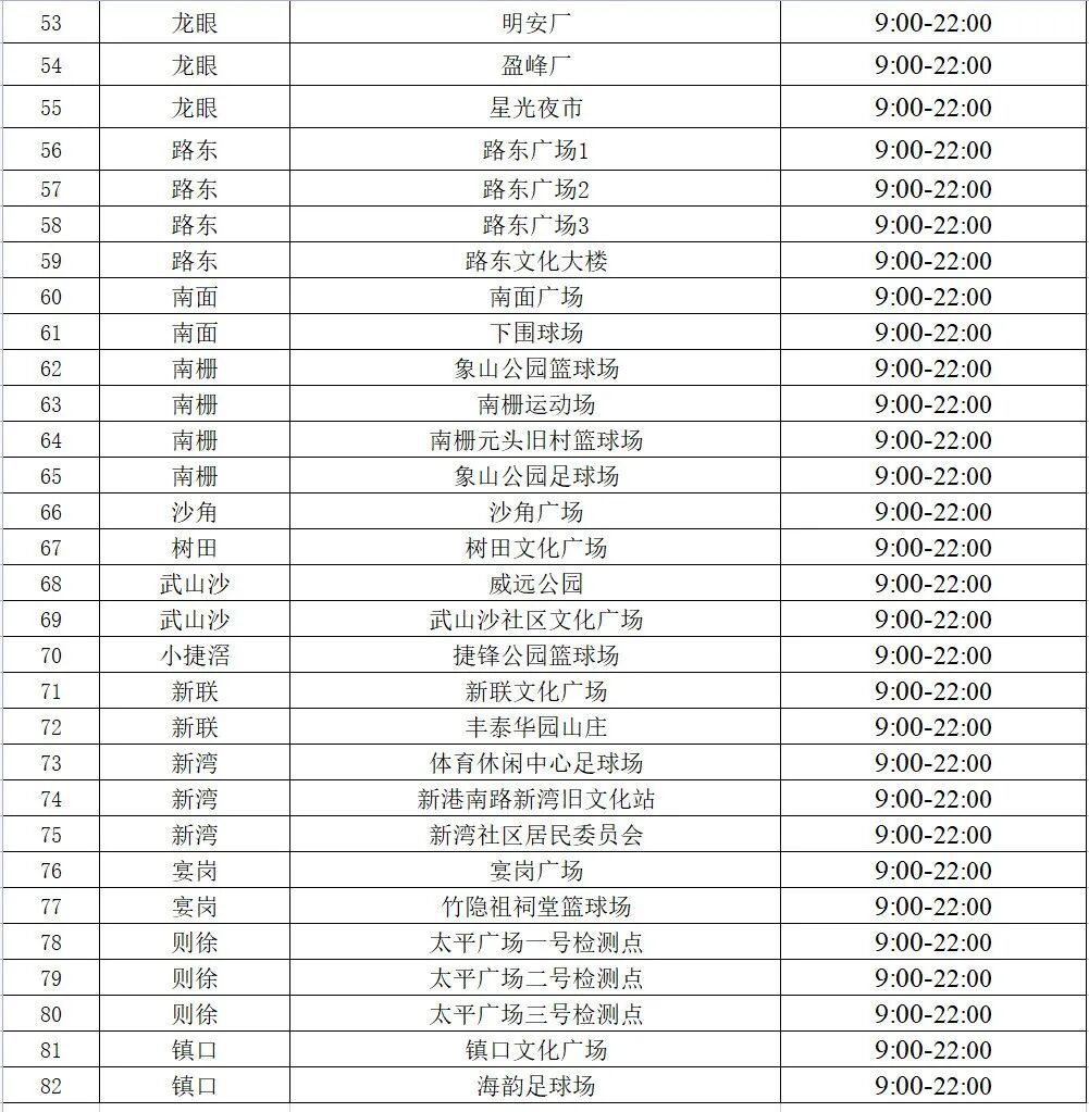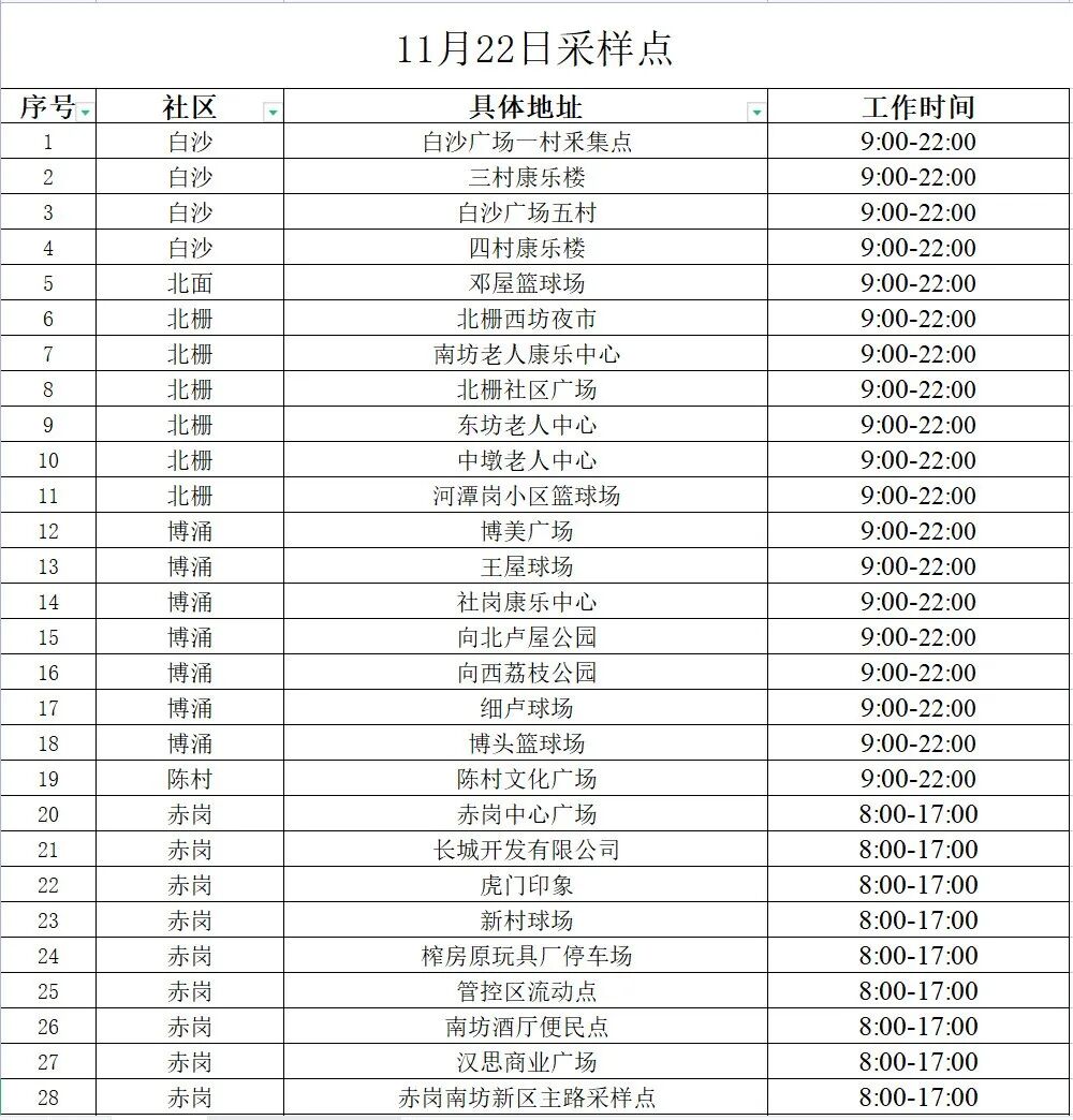 以社区为单位设置固定采样点(详见下表,具体以社区现场公布为准),请选择就近采样点检测。