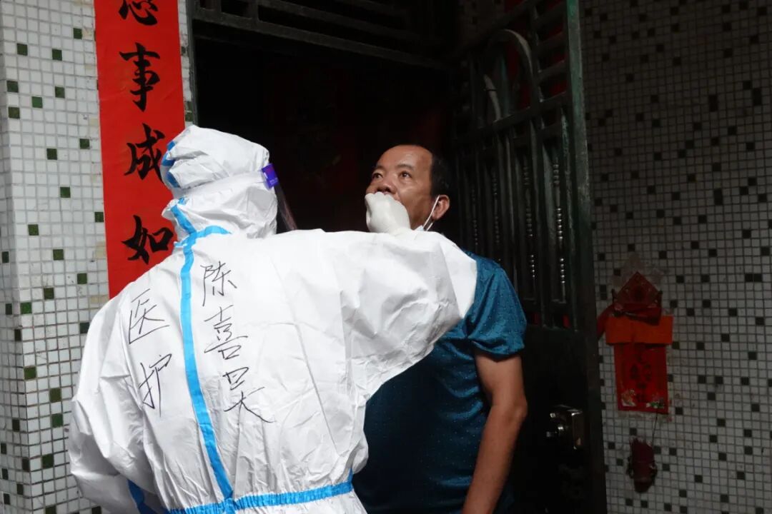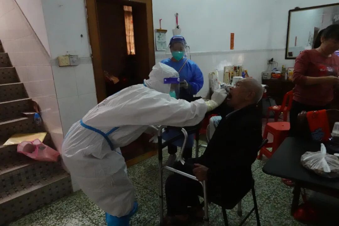 据了解,为了让高龄老人以及行动不便的特殊群体足不出户完成核酸检测,共有6个核酸检测机动组在赤岗社区临时管控区服务,他们穿梭于各家各户,全力保障采样工作有序开展。