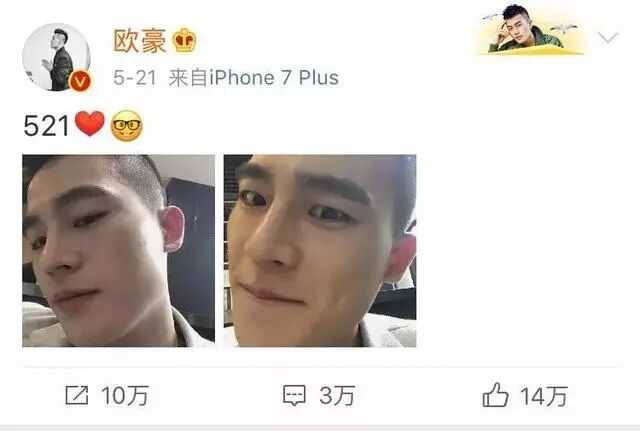 第二,5月21日,欧豪发521的爱心微博,没有@马思纯,也没有得马思纯的互动。