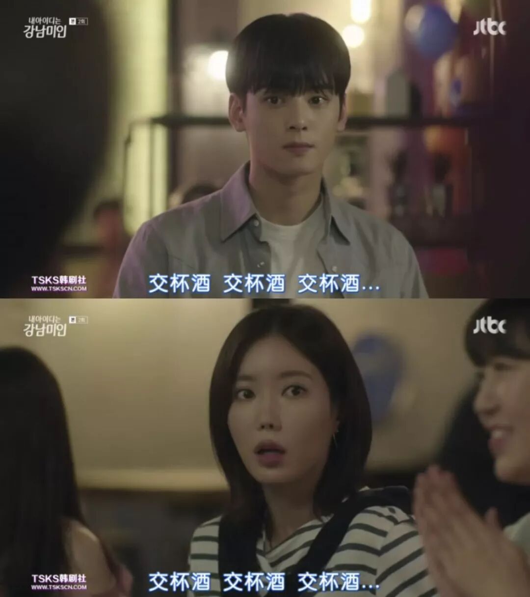 大眼瞪小眼,怎么办?谁喝?那不如交杯吧(编剧会玩哦)。