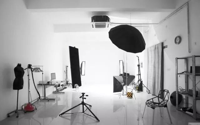时尚杂志拍摄现场,工作人员紧张却有序的摆着拍摄器材,大灯直射的人眼花。