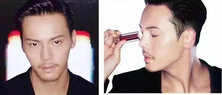 同样是胡子拉碴的代言口红,陈伟霆就显得比白宇聪明一些,人家没涂就只是拿在手里,这样就容易被接受多了。
