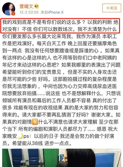 半夜2点,曹曦文再次回怼:老娘就是没加戏!