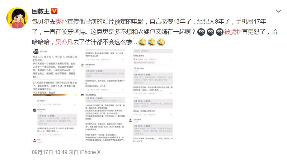 同样让人看不懂的还有包贝尔,《胖子行动队》上映前期他跑去虎扑宣传。