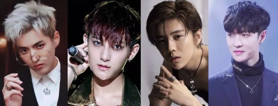 吴亦凡美丽的妆容,黄子韬妩媚的眼线,鹿晗精致的五官,张艺兴百变的耳钉。