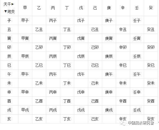 十个天干和十二个地支相配是阳配阳,阴配阴,