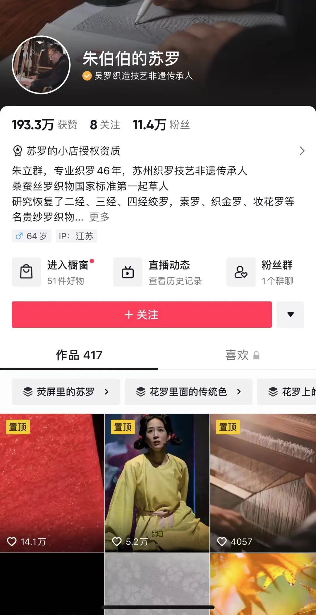为了让更多人了解到苏罗的美,朱立群身为传承人任重道远,并开始在抖音平台上分享。