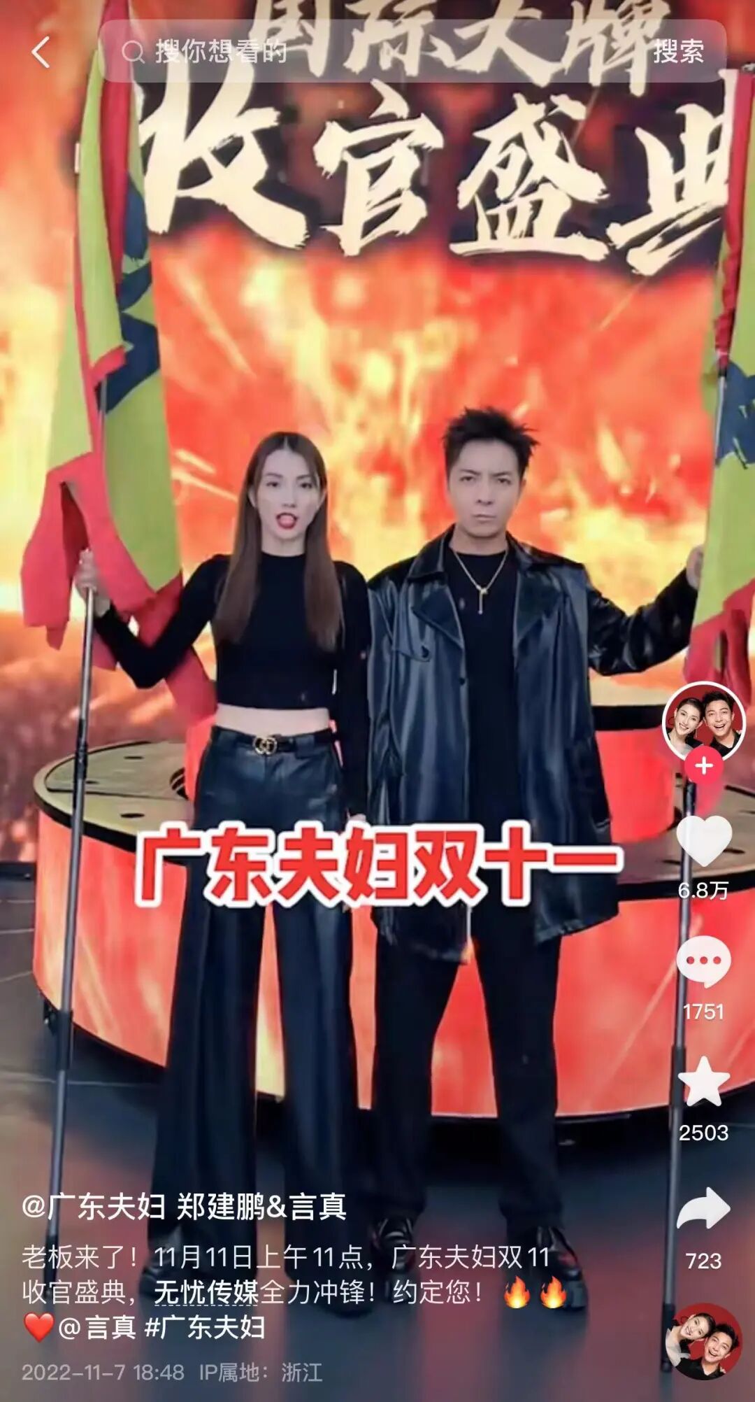 郑建鹏因哽咽暂停了直播,对着直播间的观众表示感谢,“在广东,像我们这样的夫妇有千千万,我们很荣幸今天能得到那么多人的信任”。