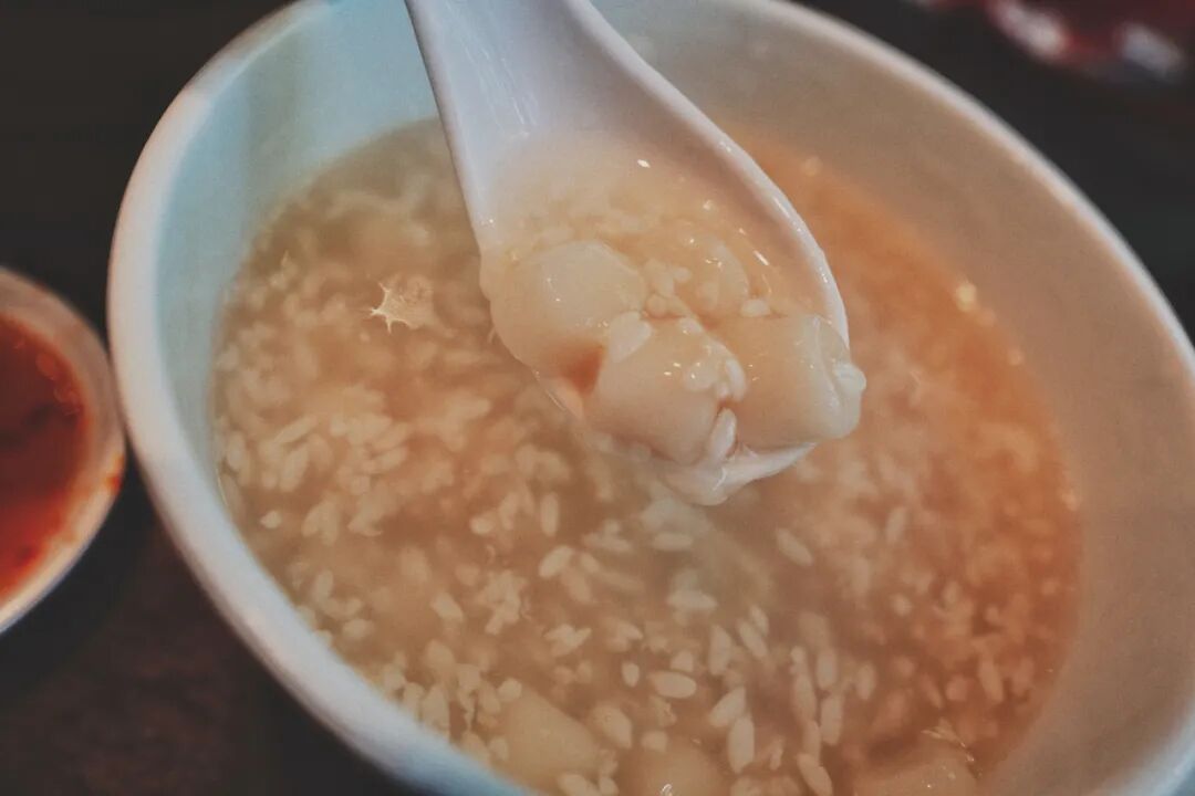 我们还点了一碗酒酿圆子。圆子不是机器做的圆滚滚的那种,而是现场手搓出来的,吃起来比小圆子韧得多、糯得多,反正我先爱了。