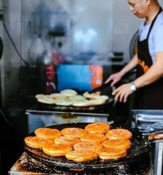 有牛肉、猪肉、红糖三种味道,最受欢迎的是牛肉锅盔,一口下去,脆爽不油腻,肉馅的味道也特别香,连掉下来的渣渣都不想浪费。