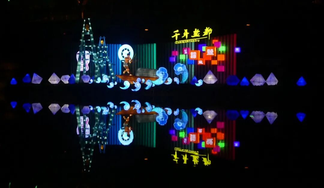 在不能看到的灯会的日子,我们也可以通过夜游釜溪的形式去了解这座城市的文化。穿城而过的釜溪河是自贡人的母亲河,曾经是一条臭水河,在全市人民的齐心协力之下变成了如今“半城青山半城楼,彩灯辉映碧水流”的模样。