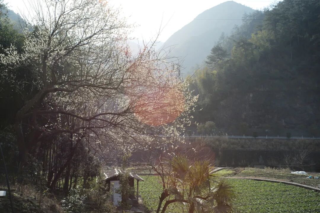 我原本只是想找一个角度来拍桥,但走到桥底,意外看到了村里的千年柏树,还有一大棵正开放的梅花,那个刹那,我忽然能感受到一些自然呈现的静谧的力量。
