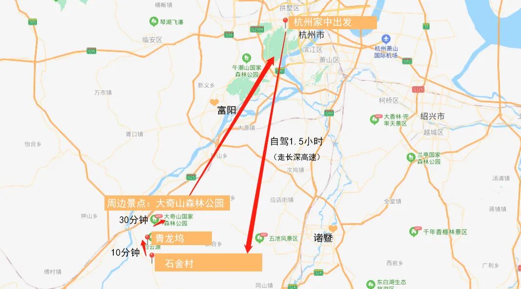 我从杭州市区出发,差不多1.5小时到达石舍村。