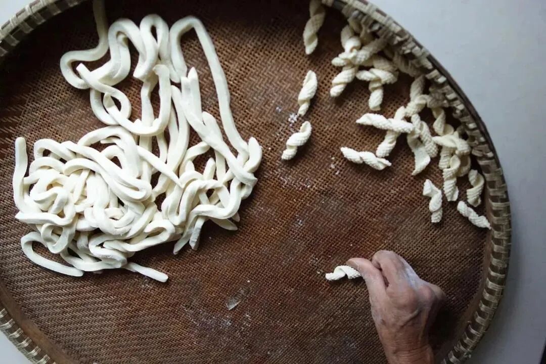 “米筛爬”是石舍村当地特有的一种小面食,吃起来的感觉有点像杭州的面疙瘩。这里的米筛,是一种农村里用来过粮食的农具,它是用毛竹编成的。