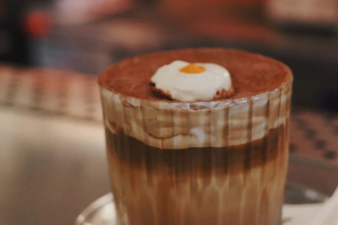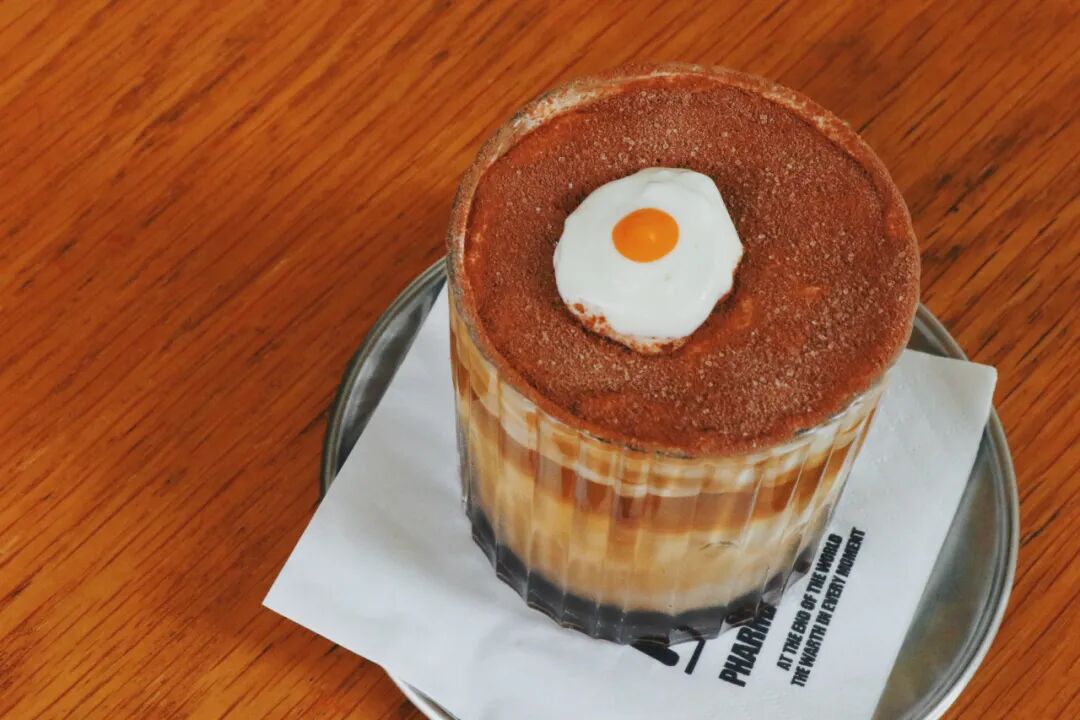 咖啡上层是用奶油打出的一个小荷包蛋,奶油与咖啡相结合,再加上奶盖与巧克力粉,入口之后甜意瞬间包裹整个口腔。