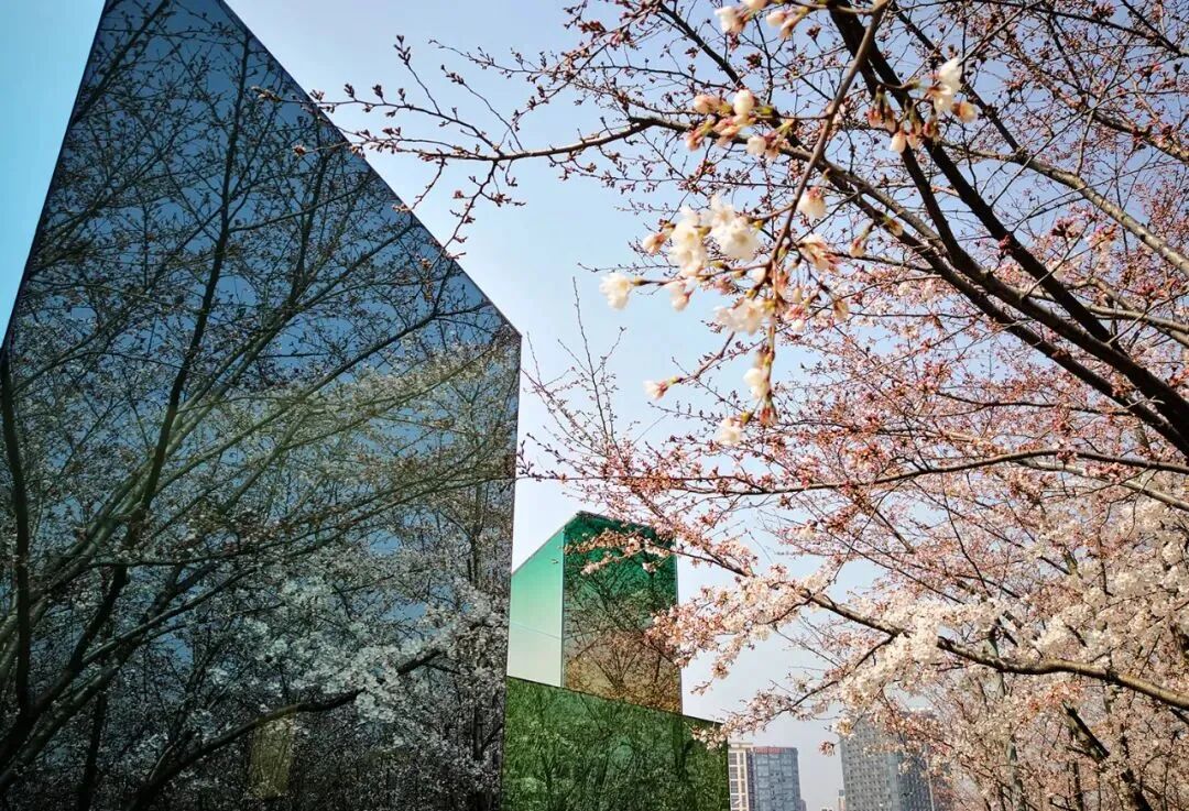 如果你春天来龙美术馆西岸馆,运气好还能看到盛开的樱花。不过最近因为疫情影响,参观前需要通过公众号预约。