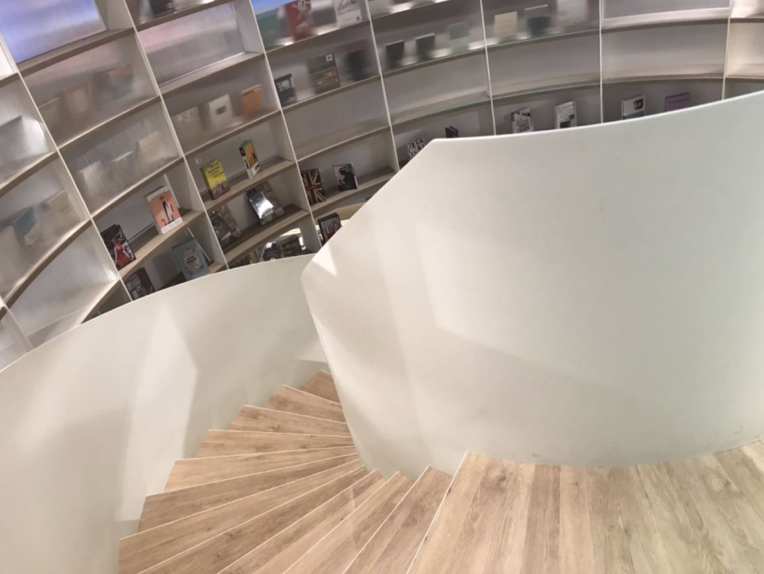 我还很喜欢这儿的螺旋状旋转楼梯。一些阅读的座位被安插在上楼的路边。除了充分利用空间,这也是观察书店众生相的最佳视野之一。![]()