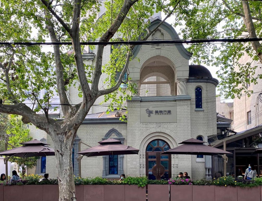 要说这家思南书局,它也大有来头,书店的建筑本体本来是一座东正教教堂⛪️,特色的「洋葱屋顶」,自带很浓郁的宗教气氛。它藏身于梧桐树下,夏天带给人满眼绿意,等到秋意浓的时候,梧桐变黄也会特好看。![]()