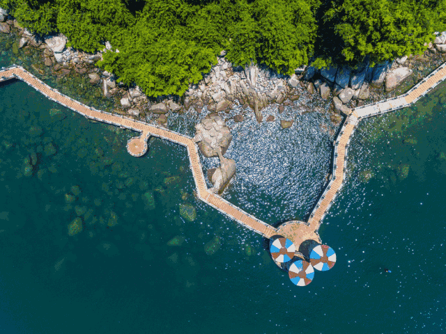 据说三角洲岛是国内第一个拥有合法产权的私人海岛,岛上住宿比较少,适合当天往返。坐快艇来回100块左右,离岛的水必须蓝到透心凉。