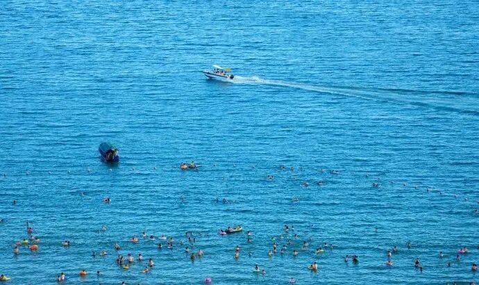 拖伞、帆船、摩托艇都能玩,一到傍晚就有不少来游泳戏水的人。