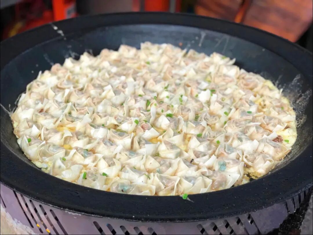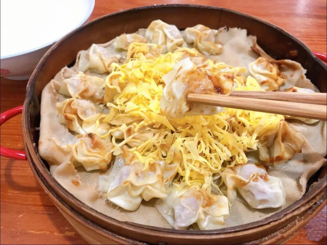 嵊州小笼包开得全国各地都有,而新昌也有自己特色的烤汤包。说是烤汤包,但在我这样的外地人看来更像是煎馄饨。