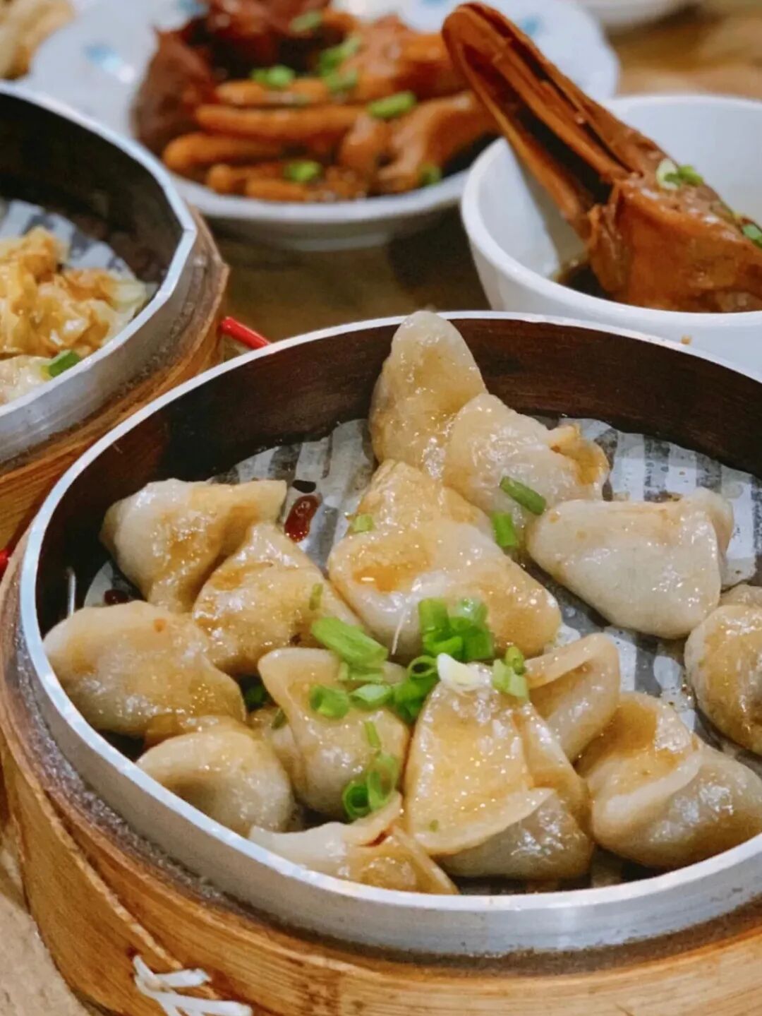 除了芋饺,一溜下的蒸馄饨、鸡爪也挺好吃,和店里的玫瑰醋绝配。