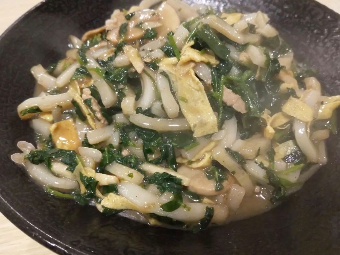 新昌炒年糕的特别之处,在于最后的出品是带汤的。