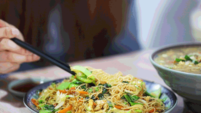 一碗炒年糕上桌连汤带水,顶饱又落胃,不会吃到噎住。