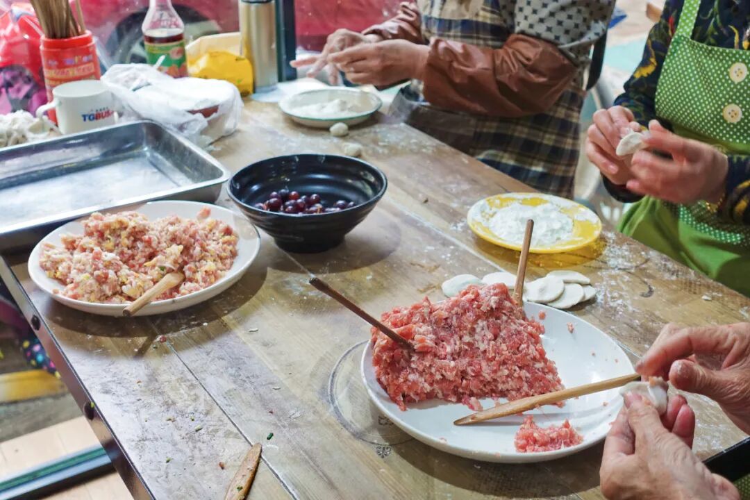 哪怕人再多,也要现压现吃。这样压出来的蒸饺皮跟北方饺子完全不同,属于水分多、偏软的口感。