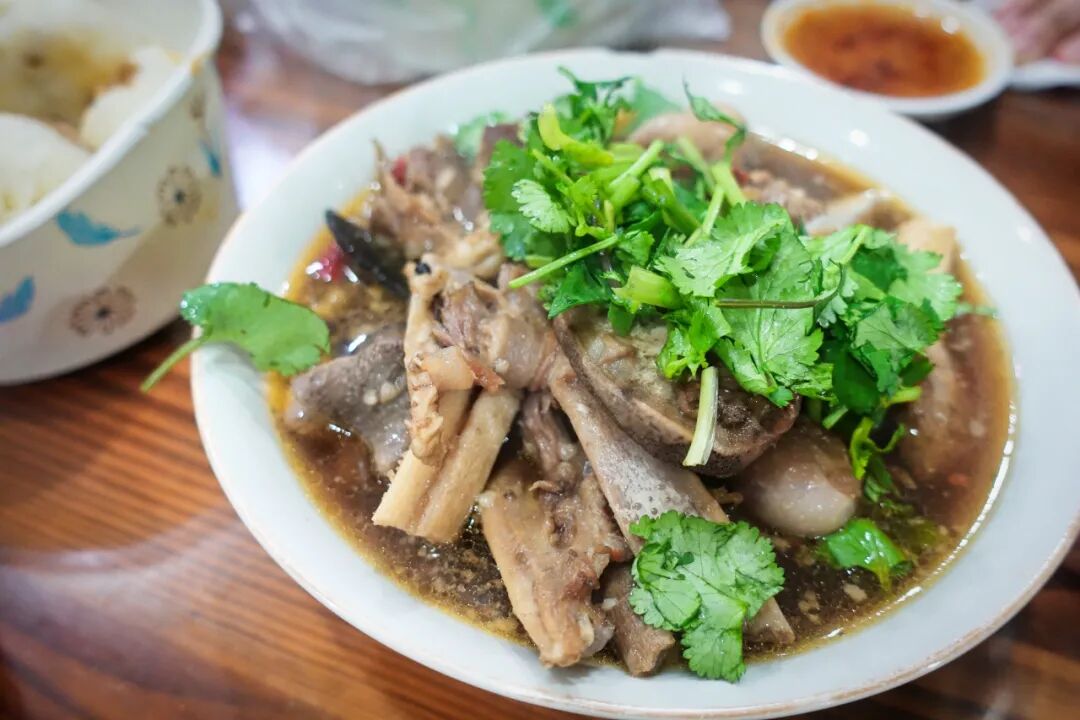 鸡汁羹也是老马家很多人点的一道小吃,用鸡汤炖各种鸡杂,当然少不了榨面、年糕、豆腐等嵊州小吃里常见的食材,一碗鸡汁羹料超级丰盛,可以从早饭吃到夜宵。