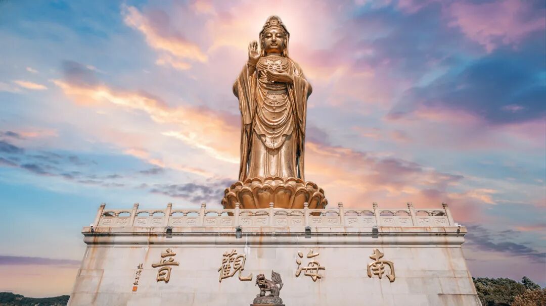 南海观音像是普陀山的地标建筑,高达33米,矗立在海边俯瞰众生。