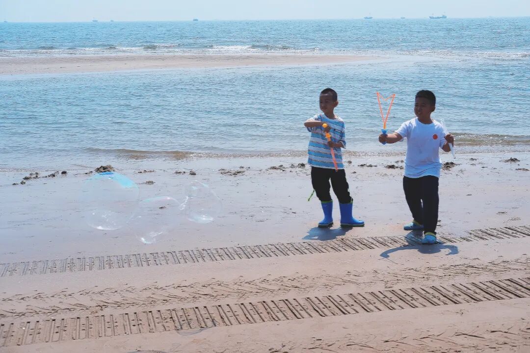 海滩是小孩子的天然游乐场,终于有挖不完的沙来消耗他们用不完精力;大海也是每个成年人的自留地,终于有合理的场合尽情放空发呆。