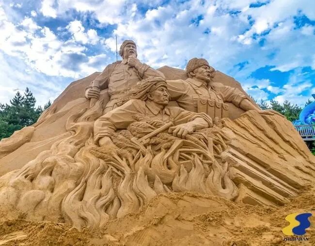 沙雕节是朱家尖每年的盛事,今年份的沙雕作品已经可以参观了。恰逢建党100周年,所以作品以红色主题为主。对了,这里也是“东海音乐节”的固定演出地。
