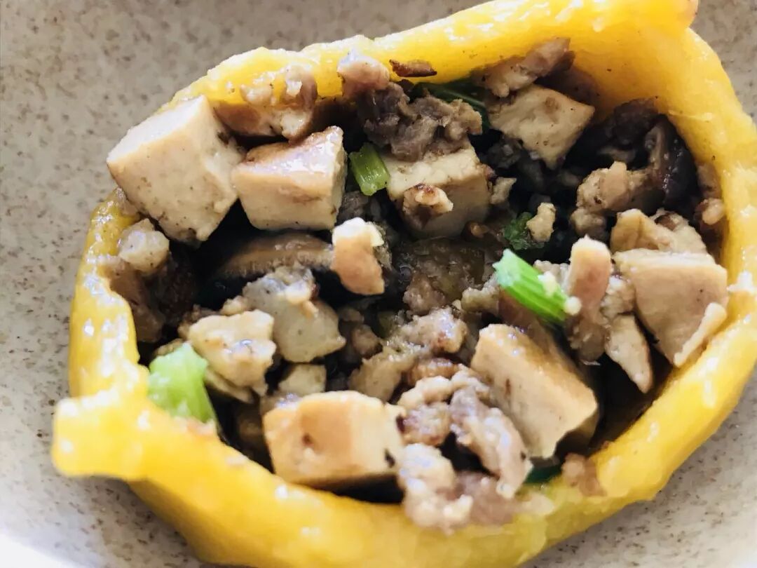 外面是用番薯粉做出的金黄色薄皮,里面的馅料通常会塞肉末、笋丁、豆腐干、鱼干、小虾米等等,做法简单、好吃不沾牙。