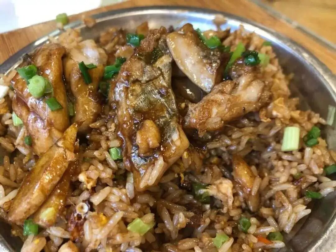 玉环人吃炊饭喜欢加肉末汤和油条碎,咸炊饭要配甜牛奶或甜豆浆。大目炊饭的料在面上铺得满满一层,一碗6块也很实惠,在店里堂食最好吃。