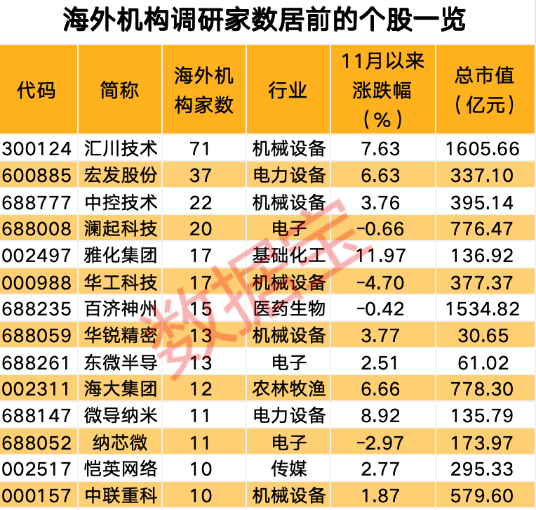 最新海外机构调研股名单出炉
