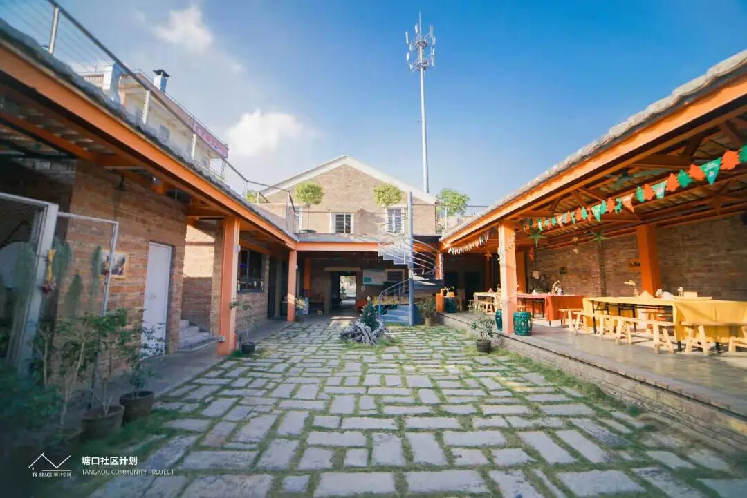 在当地,有着两座旧厂房,一座是建于20世纪80年代的红砖建筑五金厂,另一座是20世纪90年代香港侨胞投资建设的钟表机械厂。如今,两座旧厂房犹在,只是换了个模样,成为青年旅舍和社区餐厅,并取名为“塘口空间”。